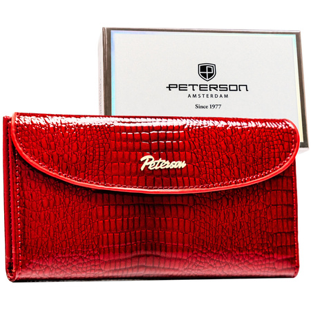 Horizontale Damen-Geldbörse aus Öko-Leder in Rot mit Krokodil-Prägung – Peterson