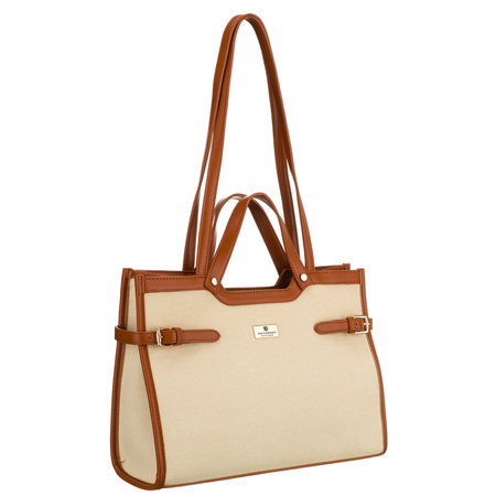 Klassische, große Damenhandtasche in Braun und Ecru – Peterson