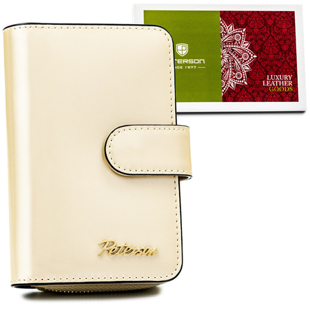 Kleine Damen-Geldbörse in Beige mit Reißverschluss und Druckknopf - Peterson