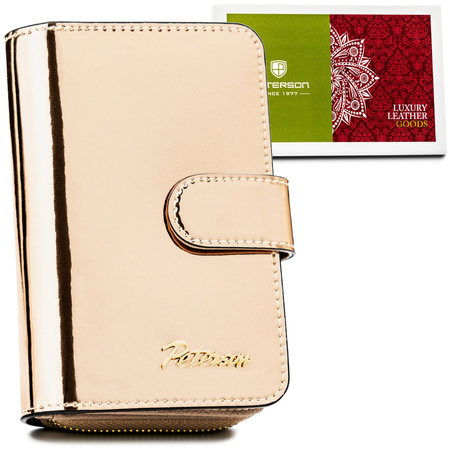 Kleine Damen Geldbörse in Gold aus echtem Leder mit Fotofach – Peterson