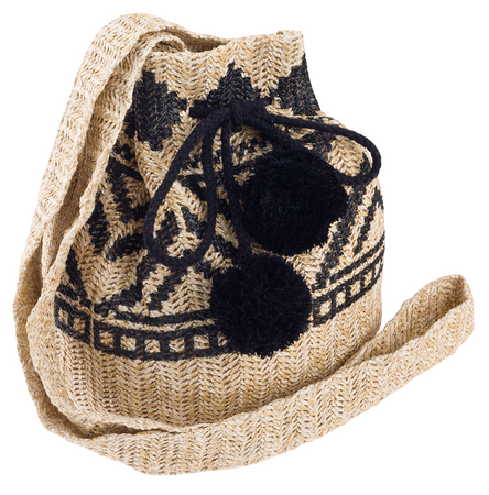 Kleine Strohtasche im Beuteldesign mit Pompons – ideal für den Sommer – Cavaldi