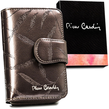 Kleine, vertikale Damen Geldbörse aus lackiertem Leder mit Blättermotiv – Pierre Cardin