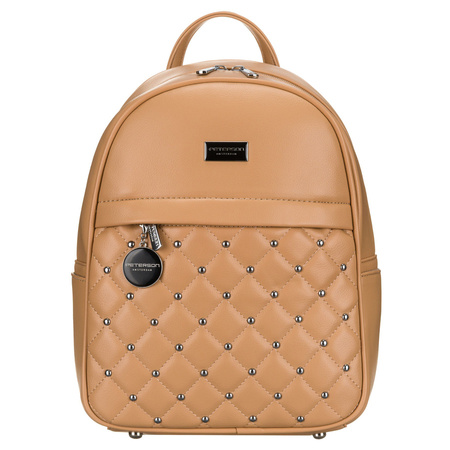 Kleiner gesteppter beiger Damenrucksack mit silbernen Nieten und modischem Schlüsselanhänger aus Öko-Leder von Peterson