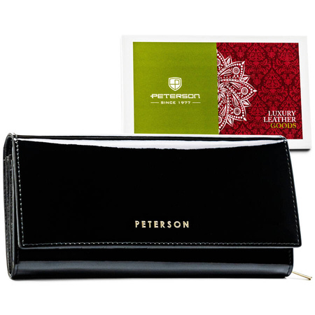 Lackierte Damen-Geldbörse aus Naturleder in Schwarz mit Schnappverschluss - Peterson