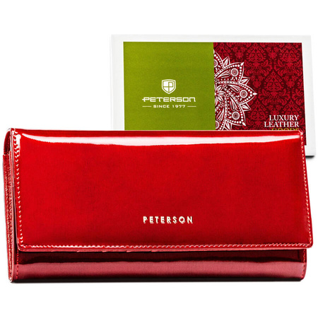 - Elegante Damen-Geldbörse Peterson aus natürlichem, lackiertem Leder. Geräumig, ideal für Karten, Dokumente und Bargeld. Mit RFID-Schutz, bietet Datensicherheit. Stilvolles Design, das jedem Outfit Klasse verleiht!