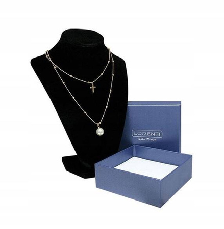 Lange, vergoldete Damen-Halskette mit Kreuz und Perle - Lorenti