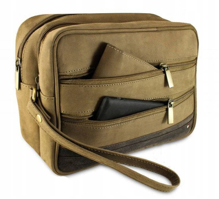 - Herren-Tasche aus Nubuk-Echtleder. Mit einem bequemen Metallreißverschluss verschließbar. Accessoire mit Außentaschen und Handschlaufe, mit Futter versehen.