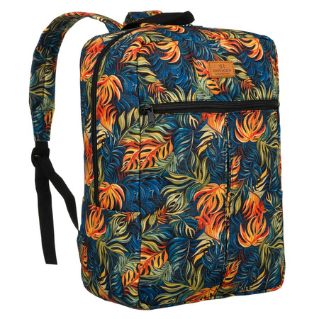 Komfortabler Ein-Kammer-Reiserucksack der renommierten polnischen Marke ROVICKY®. Ein sportliches Modell, das mit einem modischen Muster mit Pflanzenmotiven verziert ist. Er wurde so konzipiert, dass er die Anforderungen der Fluggesellschaften an kostenloses Handgepäck erfüllt.