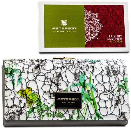 Mehrfarbige, horizontale Damen Geldbörse aus Echtleder mit Blumenmuster – Peterson