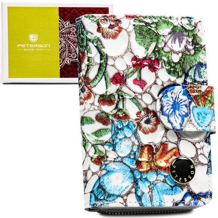 Mehrfarbige, vertikale Damen-Geldbörse aus Naturleder mit Druckknopf- und Reißverschluss - Peterson