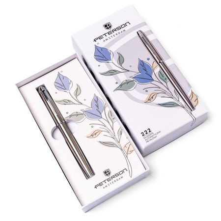 Der Kugelschreiber ist in einer eleganten Geschenkbox mit einem zarten, floralen Grafikmotiv verpackt. Dies ist ein ideales Geschenk für Menschen, die Stil, Eleganz und Funktionalität schätzen – er eignet sich als Firmengeschenk, für Lehrer, Studenten oder Geschäftspartner.