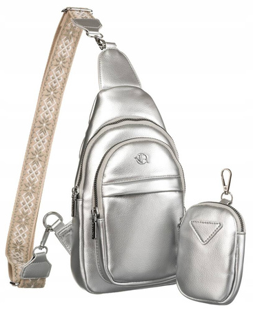 Zusammen mit der Tasche erhalten Sie eine kleine Geldbörse mit Reißverschluss, in die Sie Zahlungskarten, kleine Kosmetika, Münzen oder andere kleine Dinge stecken können. Die Geldbörse ist mit einem Karabiner an der Tasche befestigt.