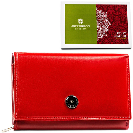 - Die minimalistische, rote Damen-Geldbörse von Peterson ist die ideale Wahl für Frauen, die Stil und Klasse schätzen. Ausgestattet mit einem geräumigen Fach für Karten und Dokumente, das durch eine RFID-Membran geschützt ist. Zur Ausstattung gehören auch F