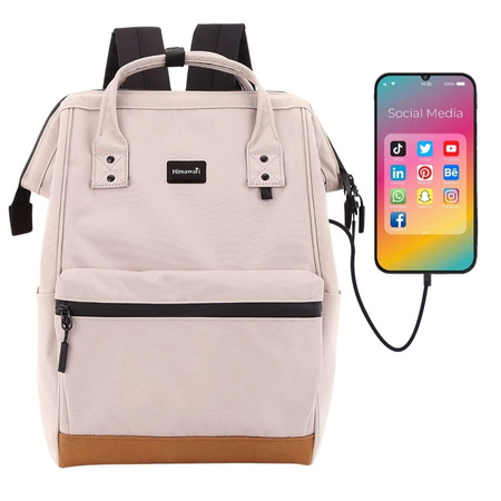 - Modischer Himawari Rucksack in Beige, hergestellt aus wasserdichtem Material, mit USB-Anschluss. Das geräumige Design bietet Platz für A4-Formate und ist ideal für Schule und Stadt. Bequeme Träger und ein ergonomischer Rücken sorgen für Tragekomfort.