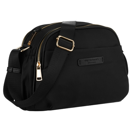 Nylon-Umhängetasche für Damen, schwarz, ein Hauptfach mit sechs Taschen - Peterson