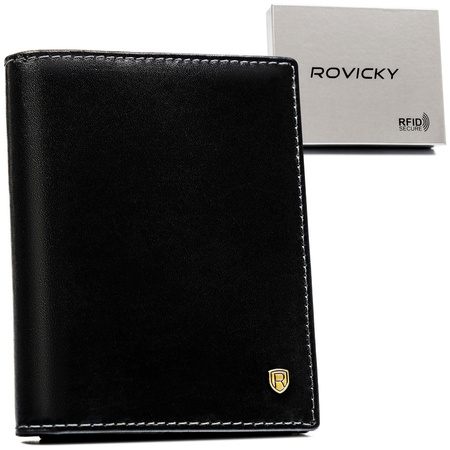 Vertikale Herren-Geldbörse aus Leder in Schwarz ohne äußeren Verschluss - Rovicky