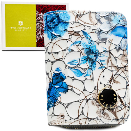 Blaue, handliche Damen-Geldbörse aus Naturleder mit RFID-System, mit Druckknopf und Reißverschluss - Peterson