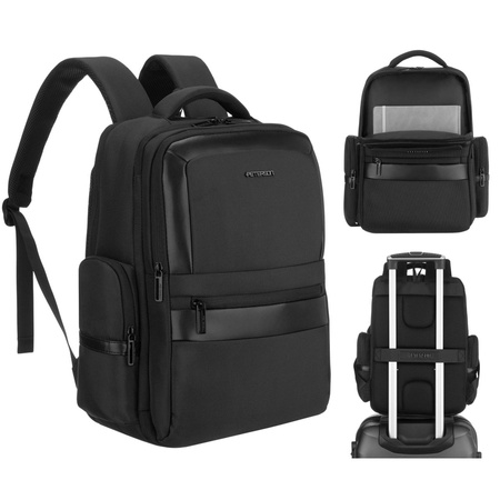 - Schwarzer Reiserucksack aus strapazierfähigem Polyester. Er verfügt über 3 geräumige Fächer, die sich ideal zur Aufbewahrung von Laptop, Dokumenten, Kleidung und Zubehör eignen. Ausgestattet mit bis zu 8 Taschen, darunter ein Laptopfach.