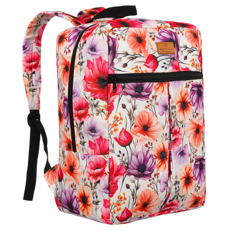 Komfortabler Ein-Kammer-Reiserucksack der renommierten polnischen Marke ROVICKY®. Ein Modell im sportlichen Stil, verziert mit einem modischen Muster mit Pflanzenmotiven. Er wurde so konzipiert, dass er die Anforderungen der Fluggesellschaften an kostenloses Handgepäck erfüllt.