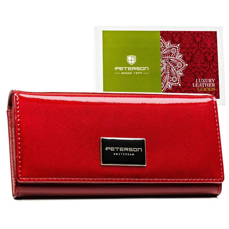 - Geräumige Damen-Geldbörse Peterson aus lackiertem Naturleder, ausgestattet mit RFID-Schutz. Funktionelles Portemonnaie mit zahlreichen Fächern für Karten, Dokumente und Münzen. Eine elegante und sichere Wahl für moderne Frauen, die Wert auf Stil und Funkt