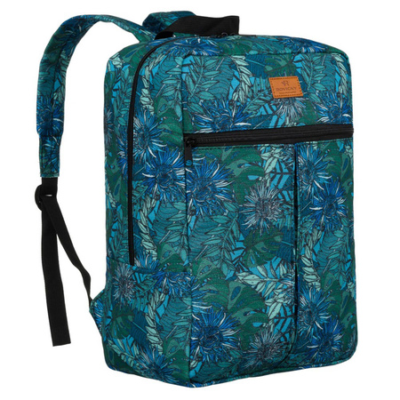 Komfortabler Ein-Kammer-Reiserucksack der renommierten polnischen Marke ROVICKY®. Ein sportliches Modell, das mit einem modischen Muster mit Pflanzenmotiven verziert ist. Er wurde so konzipiert, dass er die Anforderungen der Fluggesellschaften an kostenloses Handgepäck erfüllt.
