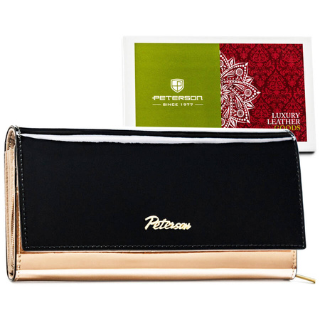 Schwarz-goldene Damen Geldbörse aus echtem Leder mit lackierter Klappe – Peterson