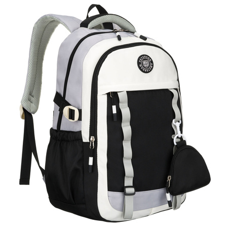 Schwarz-weißer Schulrucksack aus Polyester mit einer praktischen zusätzlichen Tasche – Peterson