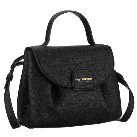 Schwarze Damen-Umhängetasche aus Kunstleder mit Außentasche – Peterson