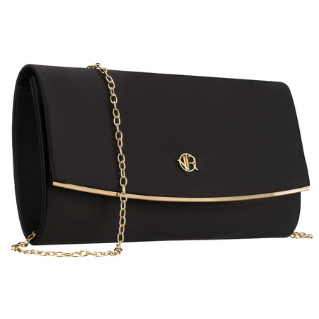 - Damen-Clutch aus Synthetikstoff in Schwarz. Hängt an einer goldenen Kette, die einen schmuckartigen Charakter verleiht. Ein Fach, mit einem Magnetclip verschlossen.