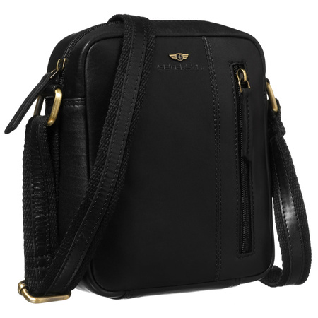 Schwarze Herren-Umhängetasche aus Naturleder mit Reißverschluss - Peterson