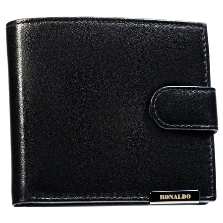 Schwarze, horizontale, geräumige Herren-Geldbörse aus Naturleder mit Schnappverschluss - Ronaldo