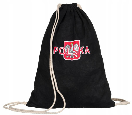 - Rucksack aus 100 % Baumwolle. Das geräumige Fach bietet viel Platz! Das patriotische Design unterstreicht die nationale Zugehörigkeit. Im zentralen Bereich des Sacks befindet sich der Schriftzug „Polska“ und das polnische Wappen. Die dicken Kordeln sind v