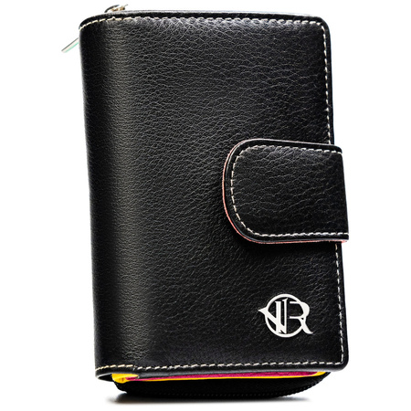 Stilvolle, schwarze Damen-Geldbörse aus Leder mit Druckknopf und Reißverschluss - Rovicky