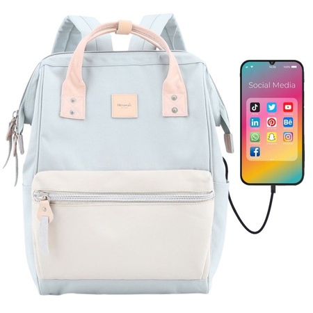 - Pastellblauer Himawari-Rucksack mit Laptopfach. Ausgestattet mit USB-Anschluss, wasserdichtem Material, Reißverschlusstaschen und verstellbaren Trägern. Ideal für Schule, Arbeit und den täglichen Gebrauch.