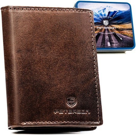 Vertikale Herren-Geldbörse aus Leder in Braun, Modell ohne äußeren Verschluss – Peterson