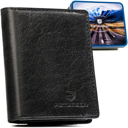 Vertikale Herren-Geldbörse aus schwarzem Echtleder, Modell ohne äußeren Verschluss – Peterson