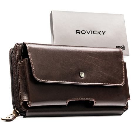 Zweifach unterteilte Herren-Handgelenktasche aus Leder in Braun mit Reißverschluss – Rovicky