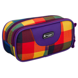 Schuletui aus Polyester mit Karomuster, zweifach unterteilt mit Reißverschlüssen - Peterson
