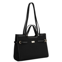Schwarze Damenhandtasche mit Magnetverschluss, an bequemen Tragegriffen getragen – Peterson