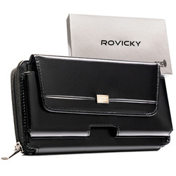 Schwarze, zweifach unterteilte Herren-Handgelenktasche aus Leder mit RFID-System – Rovicky